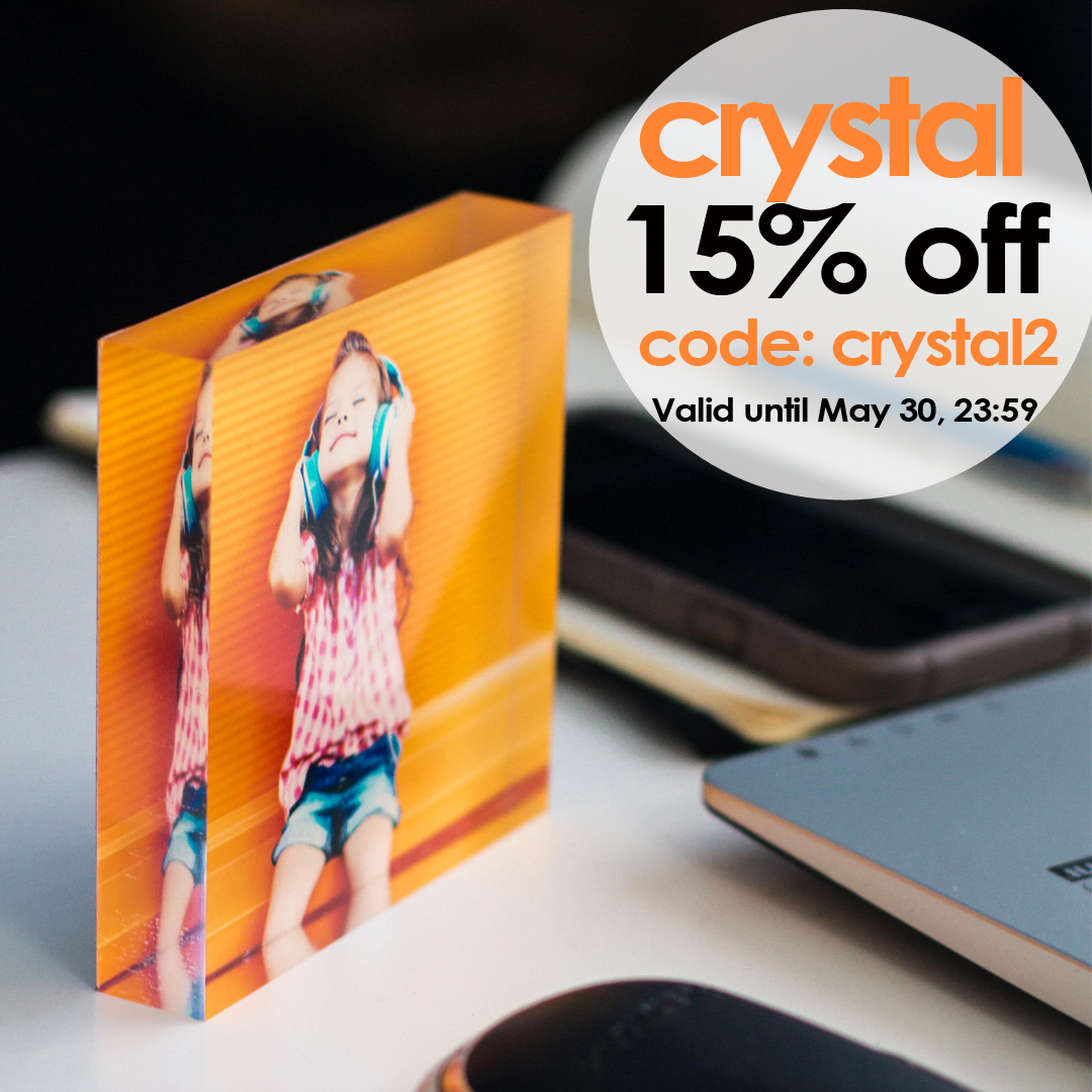 А ми подаруємо на них знижку 15%. Щоб скористатися нею, замовляй будь-який з форматів фотокристалів в будь-якій кількості і вводь наш промокод!