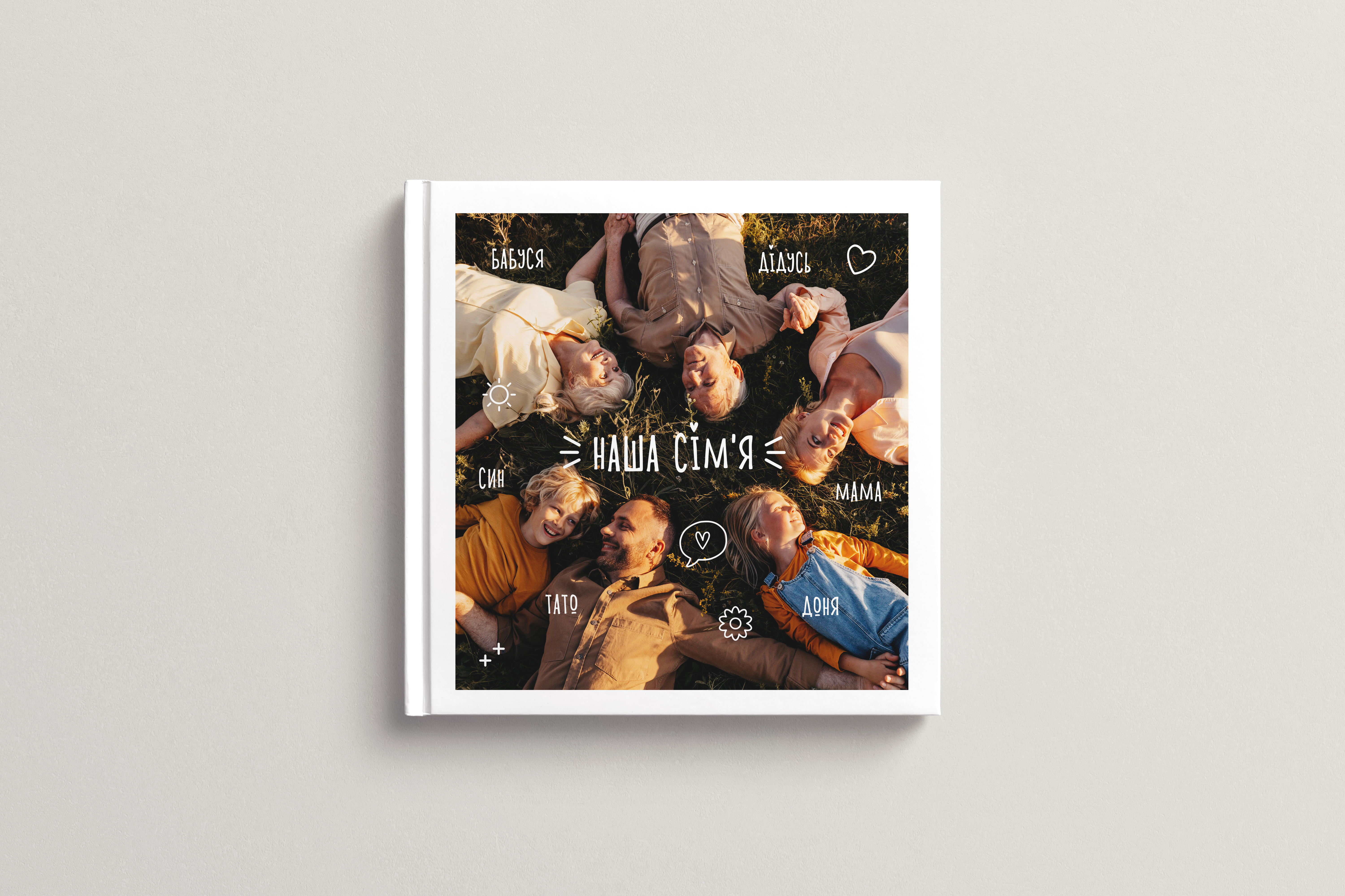 Формат інстабуку - 15х15 см. Найближчим буде формат фотокниги 19х19 Lay Flat. Якщо бажаєте такий же папір, то варто обрати фотопапір FUJI, проте трохи дешевший сатинований папір теж може вам сподобатись. Також не забудьте обрати глянцеву фотообкладинку, адже за замовчуванням фотокниги робимо з матовою обкладинкою Soft Touch.