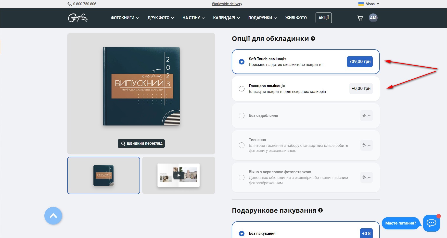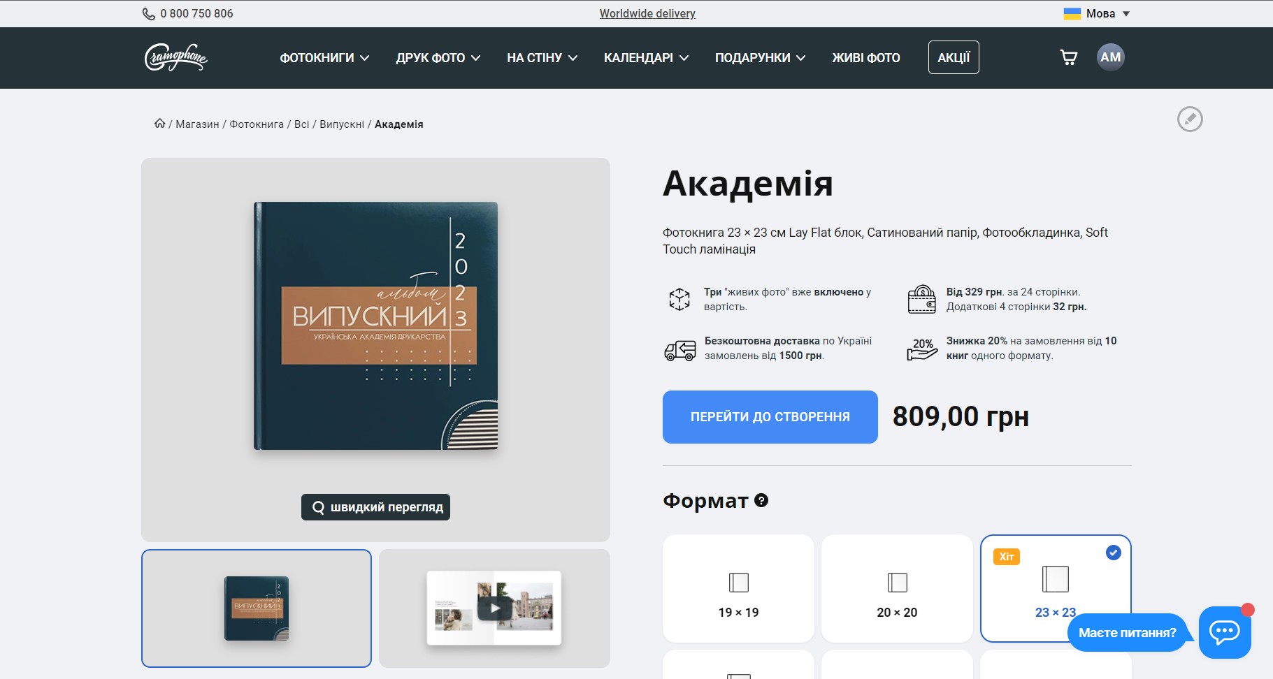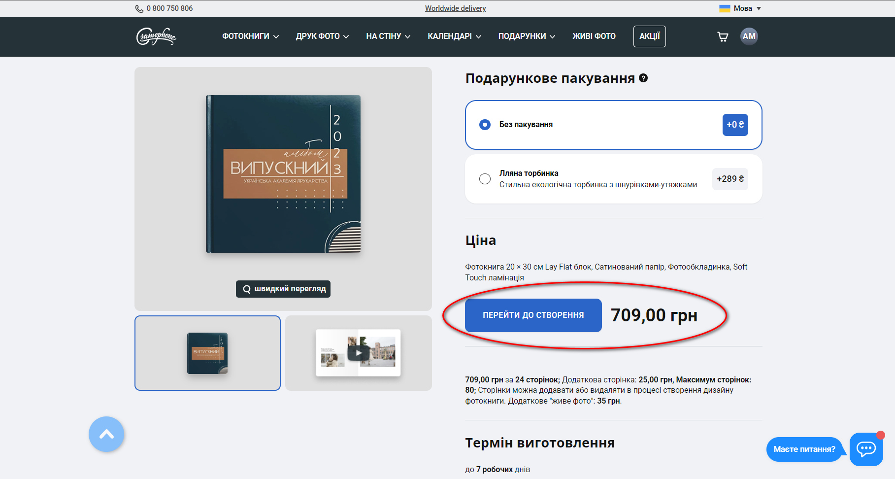 При зміні параметрів ви одразу бачите ціну за 1 альбом (24 сторінки) без знижки. Замовити фотокнигу з меншою кількістю сторінок не можна. Якщо ви не заповнете всі, вони все-одно будуть надруковані та вклеєні в альбом.