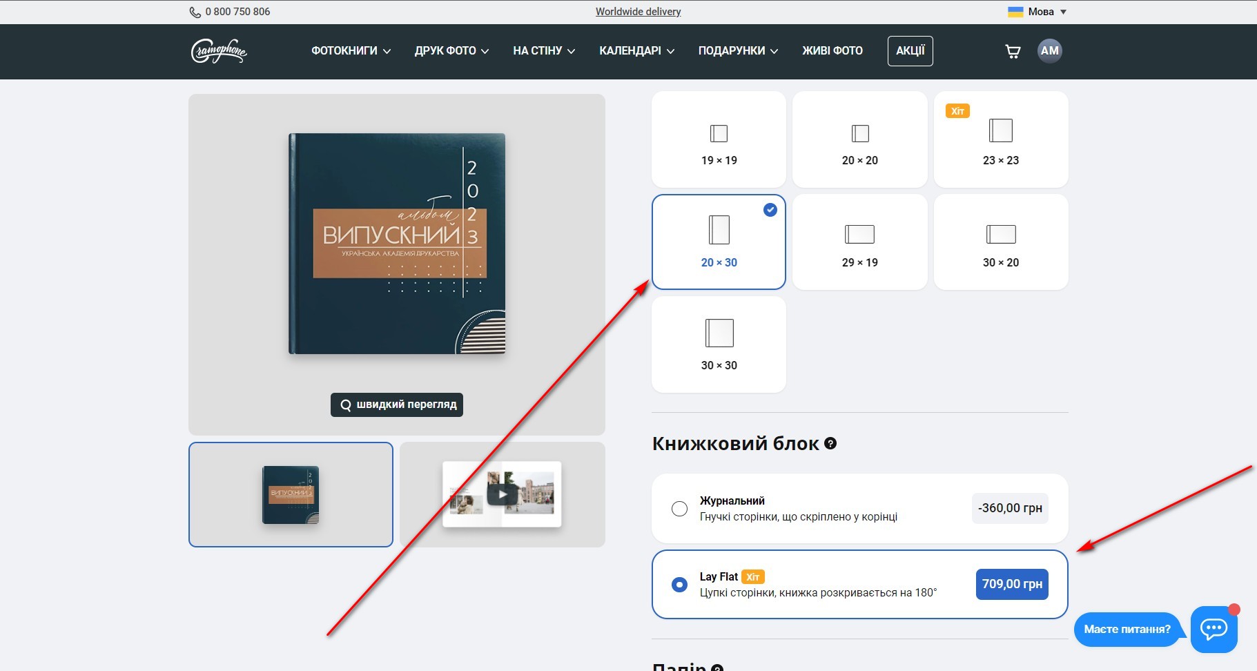В конфігураторі оберіть параметри майбутнього альбому (формат, розмір, тип блоку, папір). Журнальний блок буде найдешевший (сторінки м'які як в журналі). А якщо бажаєте класичний випускний альбом обирайте блок Lay Flat та сатинований папір.