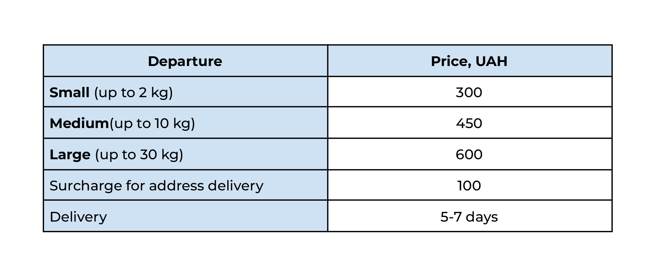 Declared delivery time is only 5-7 days. Tariff from UAH 300 for 1 shipment to the post office. You will have to pay an additional 100 hryvnias for address delivery.