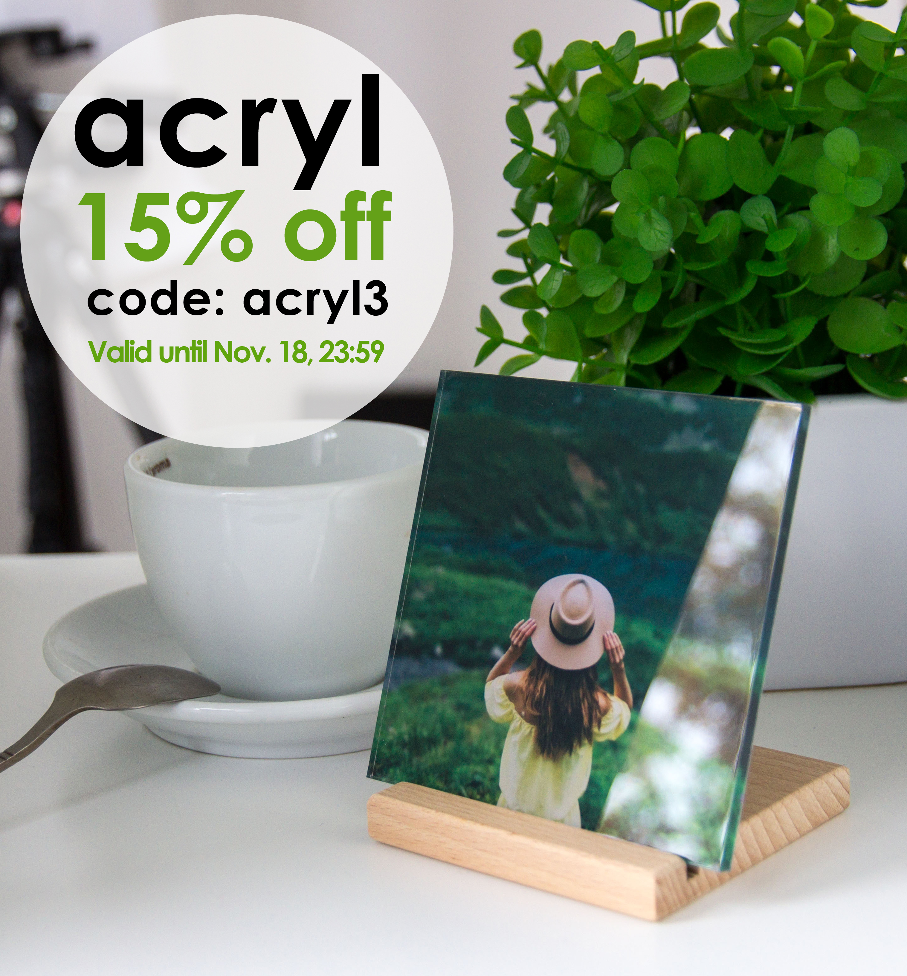 Our photo acrylics are four convenient formats, durable acrylic and a stylish wooden stand included. And today there is also a 15% DISCOUNT!