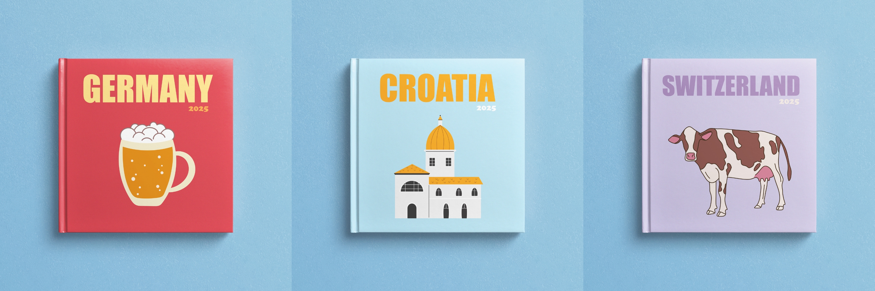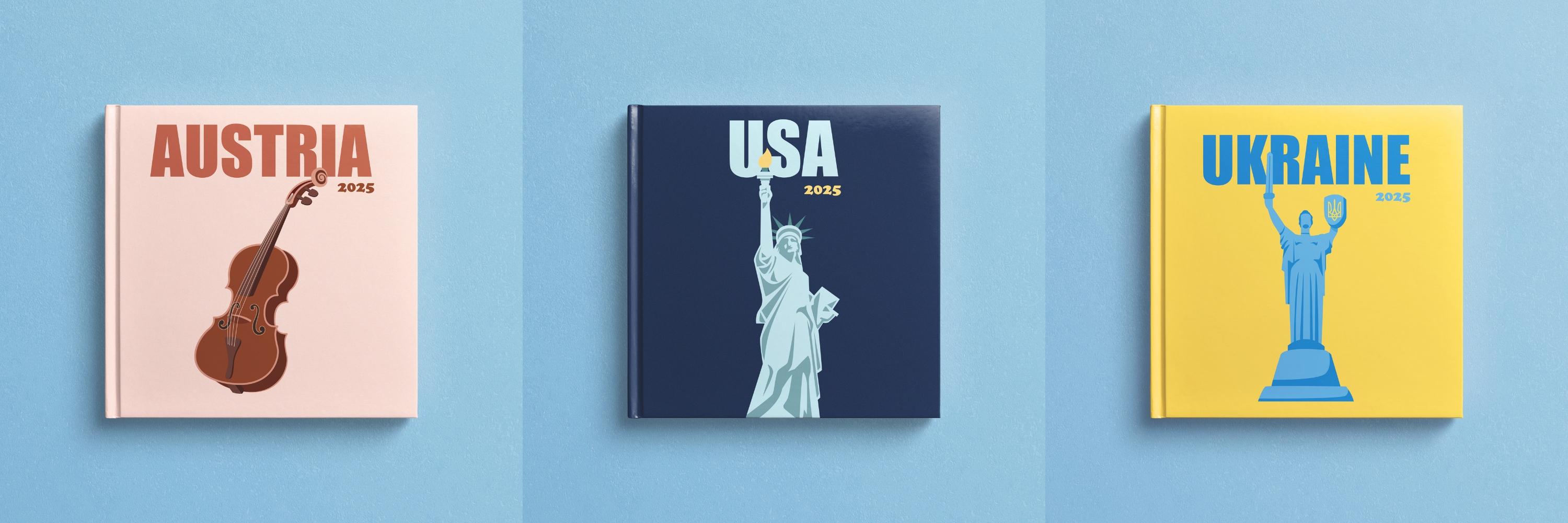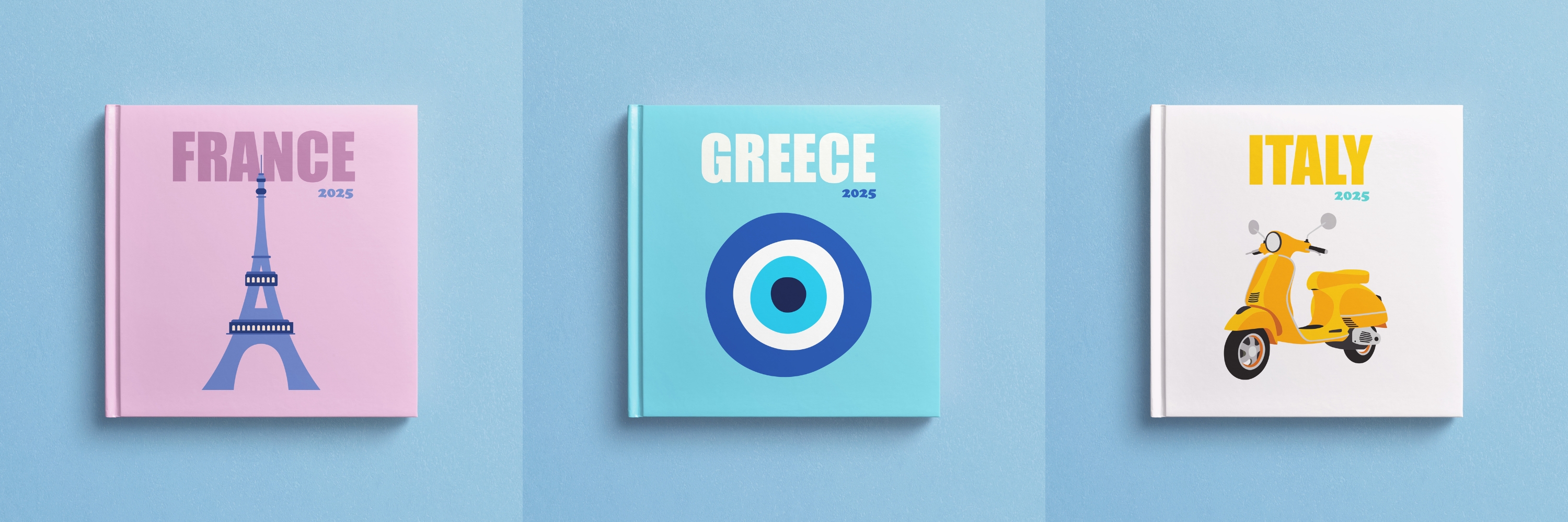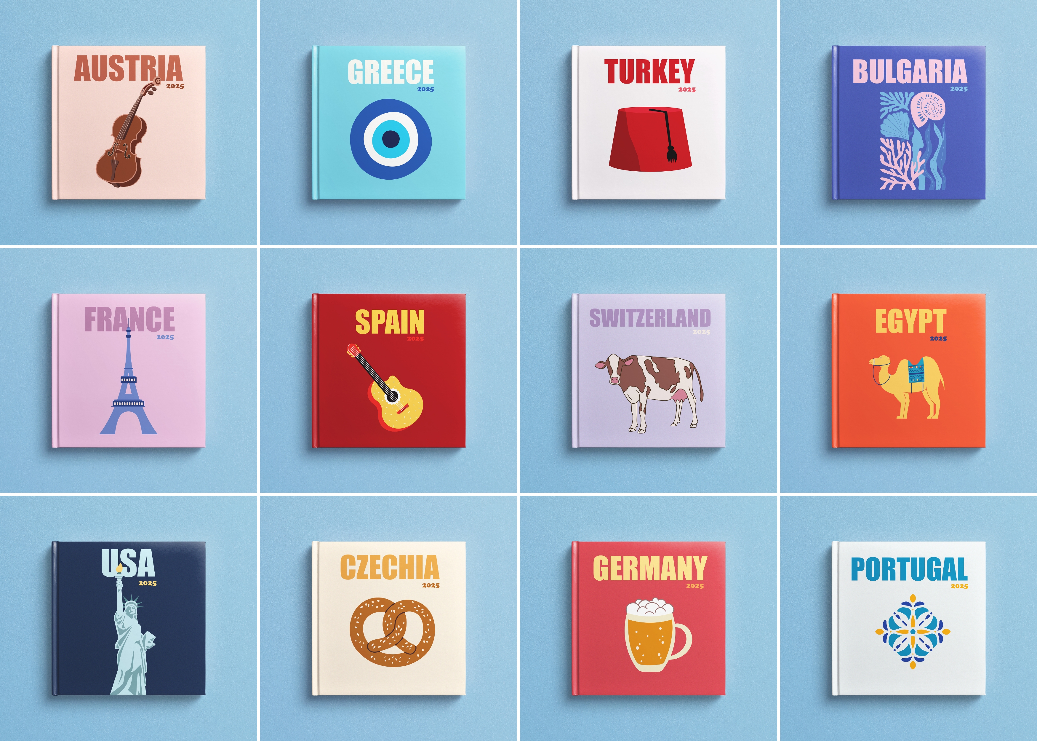 We have prepared a new collection of photo books for you in the "Countries" section. This collection is distinguished by bright, stylish covers and minimalistic content consisting only of cells for photos. Preserve your vacation memories in stylish photo books.