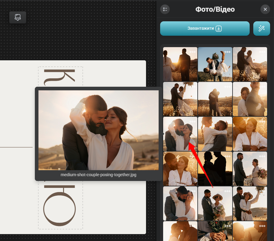 Are you having a hard time viewing photos in the canvas of uploaded files? No big deal! Hover your cursor over the chosen photo, linger on it and a large photo preview will open.