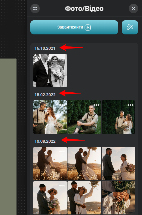 If you accidentally uploaded two identical photos or your pixelated-blurred hand on the backdrop of the floor, you can remove them from the photo canvas so that they don't confuse you when creating your dream photo book. To do this, hover your cursor over the unwanted photo. A cross will appear in the upper right corner. Click to delete the photo.