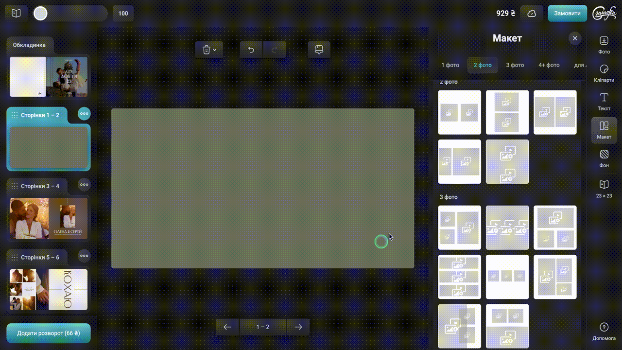 Online Editor is a free graphic editor for creating photo books from ready-made special templates developed by Gramofon.ua