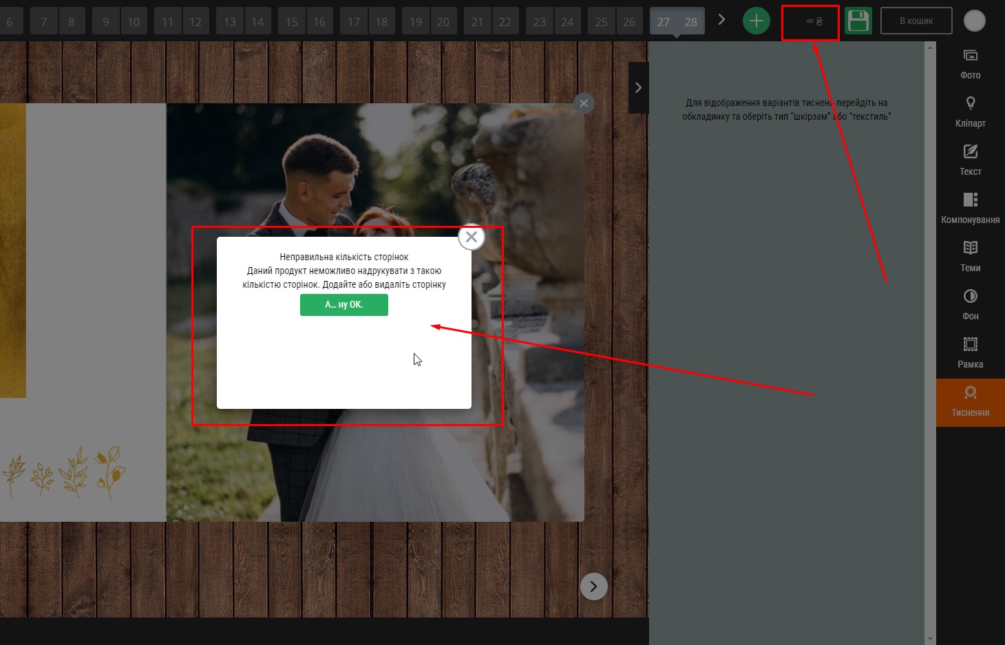 This prompt is displayed if you have selected a photo book with Polygraphic Printing type and Magazine internal unit type and added N number of additional pages to the base number of pages. As this book is printed in pages stapled at the root of the book, it requires a certain multiplicity of pages according to the selected format. You will need to delete two pages, or add two more, to create the order.