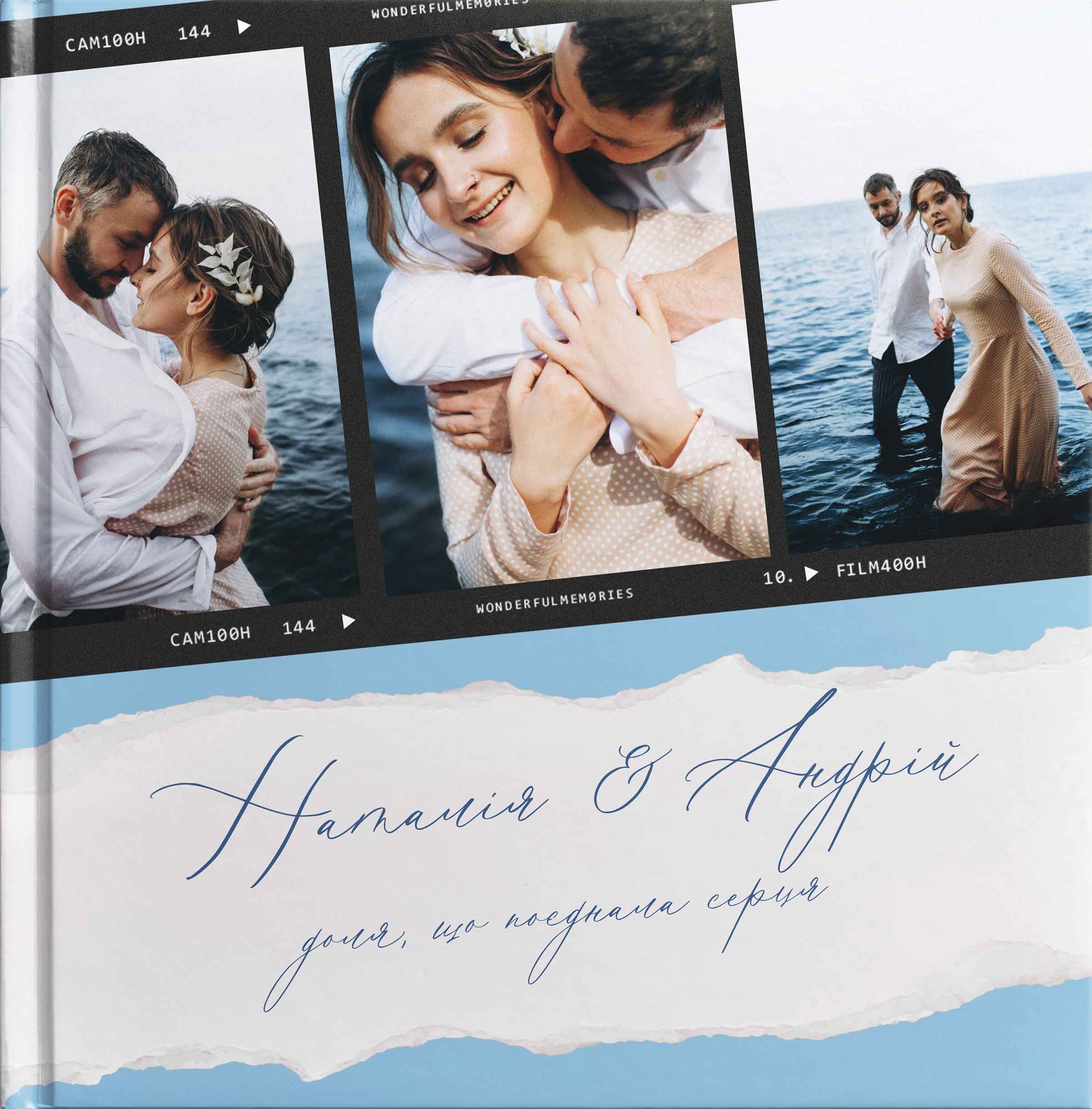 Кохання ніжне та чуттєве як блакить океану. Шаблон має вінтажний настрій за рахунок імітації фотоплівки та скрапбукінгу. Лише додайте свої фото і ваша фотокнига одразу перетвориться в ліричну історію кохання.